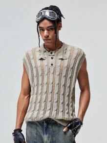ROMWE Avant Hombres Chaleco de punto desgarro tejido de cable