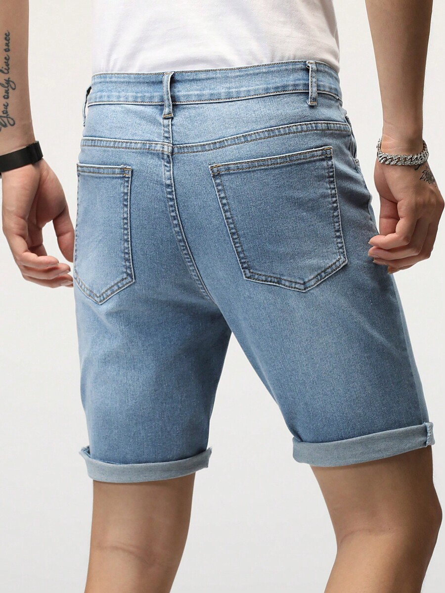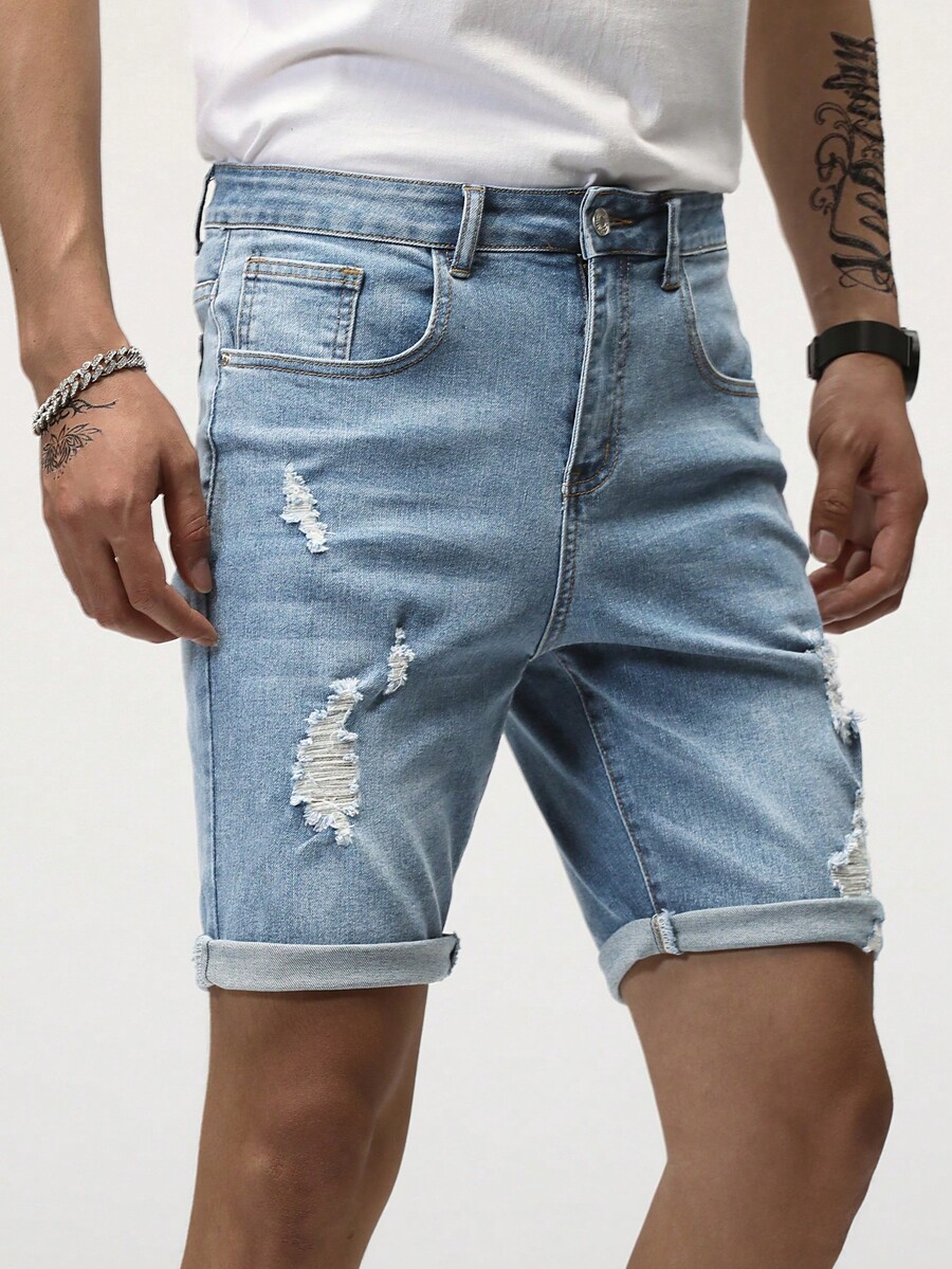 Hombres Shorts mezclilla bermuda algodón desgarro crudo con lavado