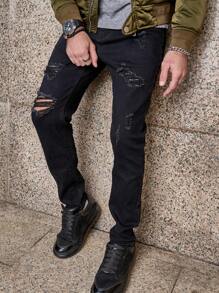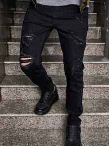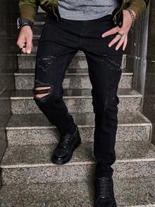 Hombres Jeans ajustados desgarro