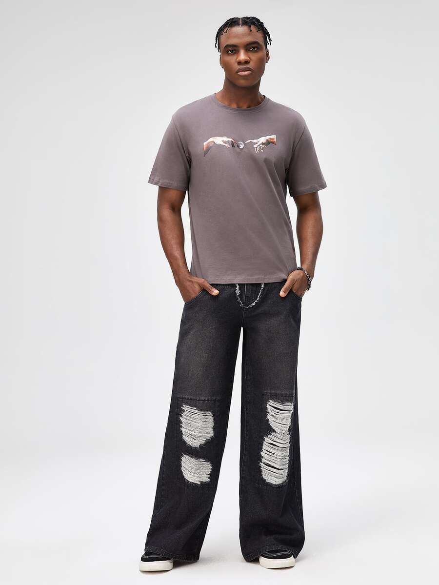 Hombres Jeans desgarro con bolsillo oblicuo