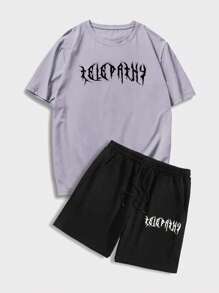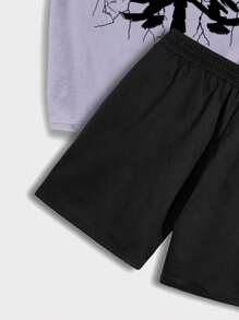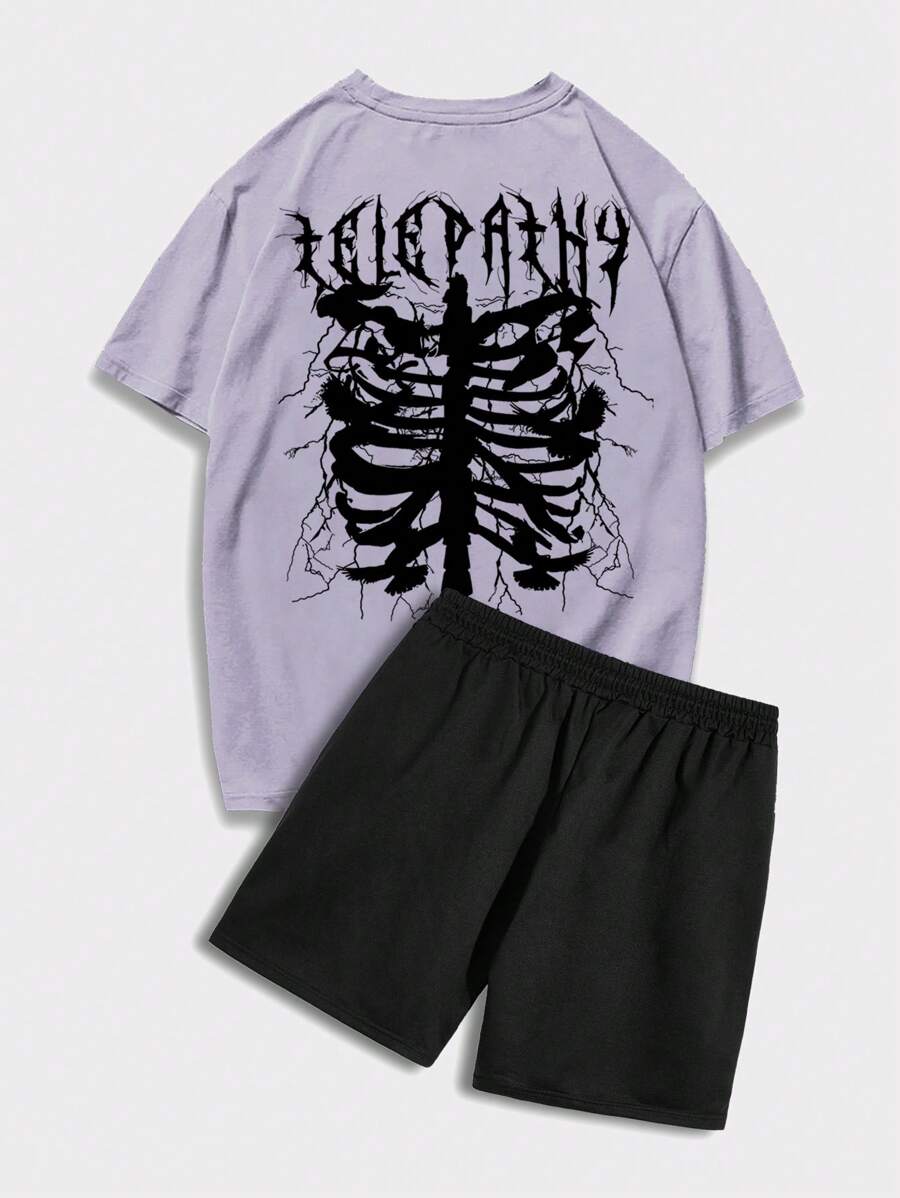 Hombres Shorts con camiseta algodón estampado de esqueleto