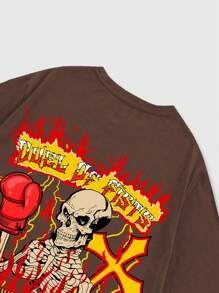 Grunge Punk Camiseta Gráfica Para Hombre Con Calavera Y Letras