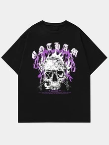 Hombres Camiseta de cráneo & con estampado de slogan
