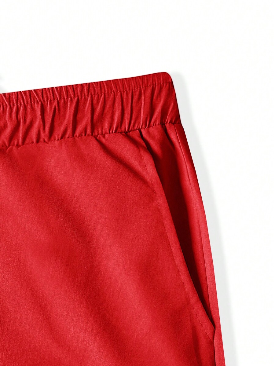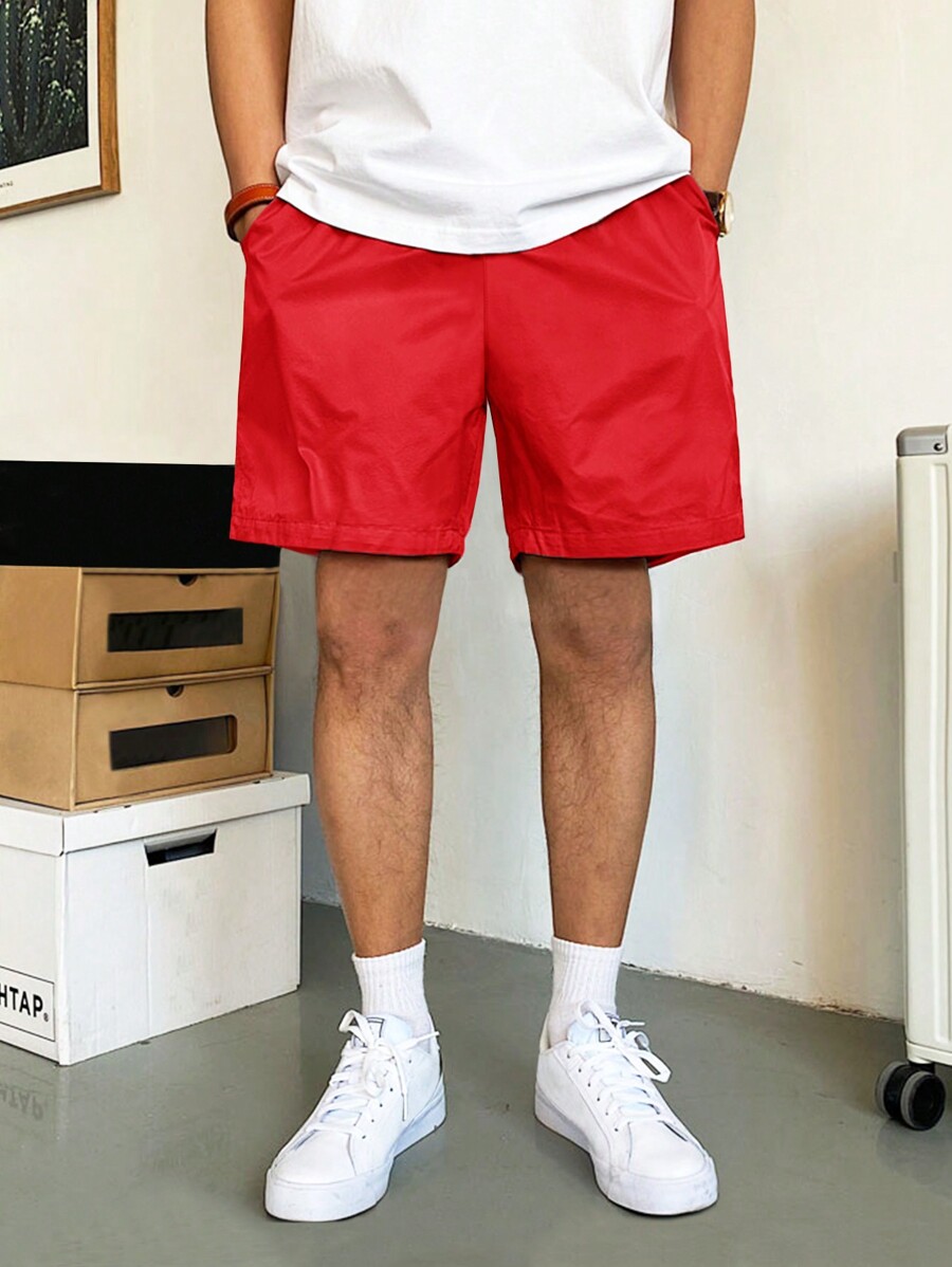 Pantalones cortos holgados para hombre con cintura con cordón y bolsillos en diagonal