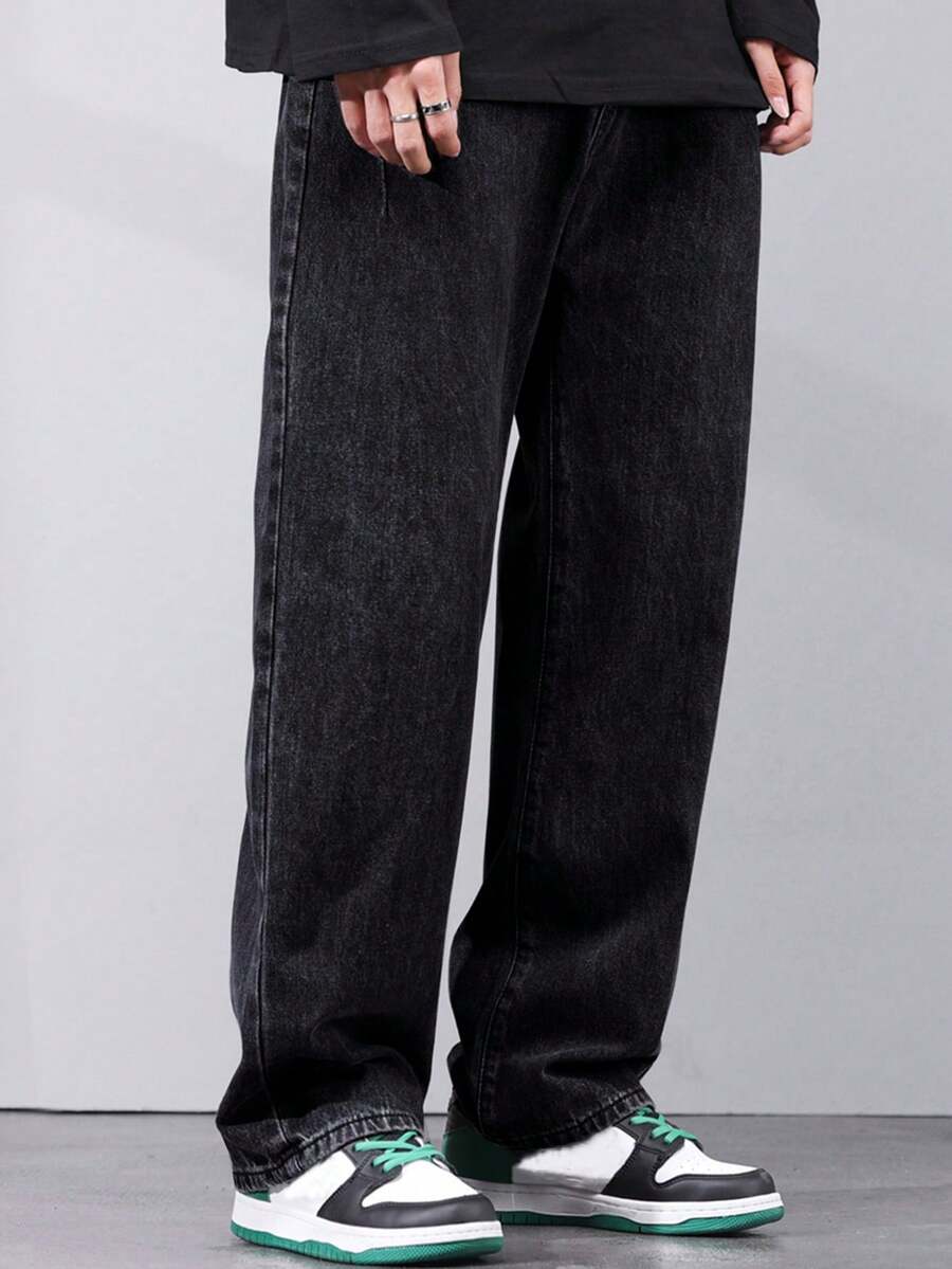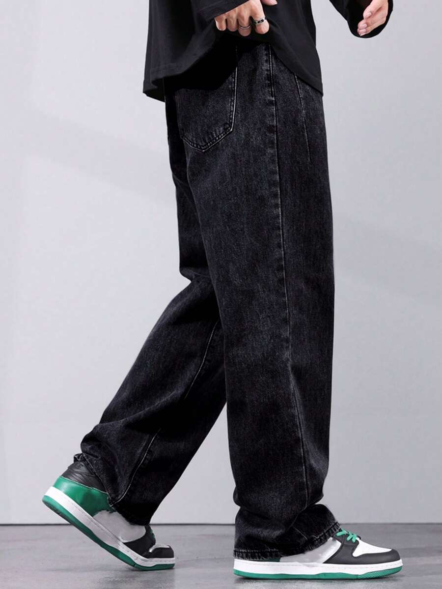 Jeans rectos con bolsillo sesgado para hombres, estilo grunge