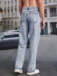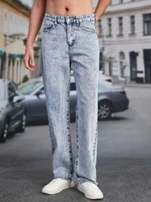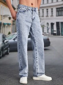 GENTILAND Hombres Jeans de pierna recta con bolsillo oblicuo