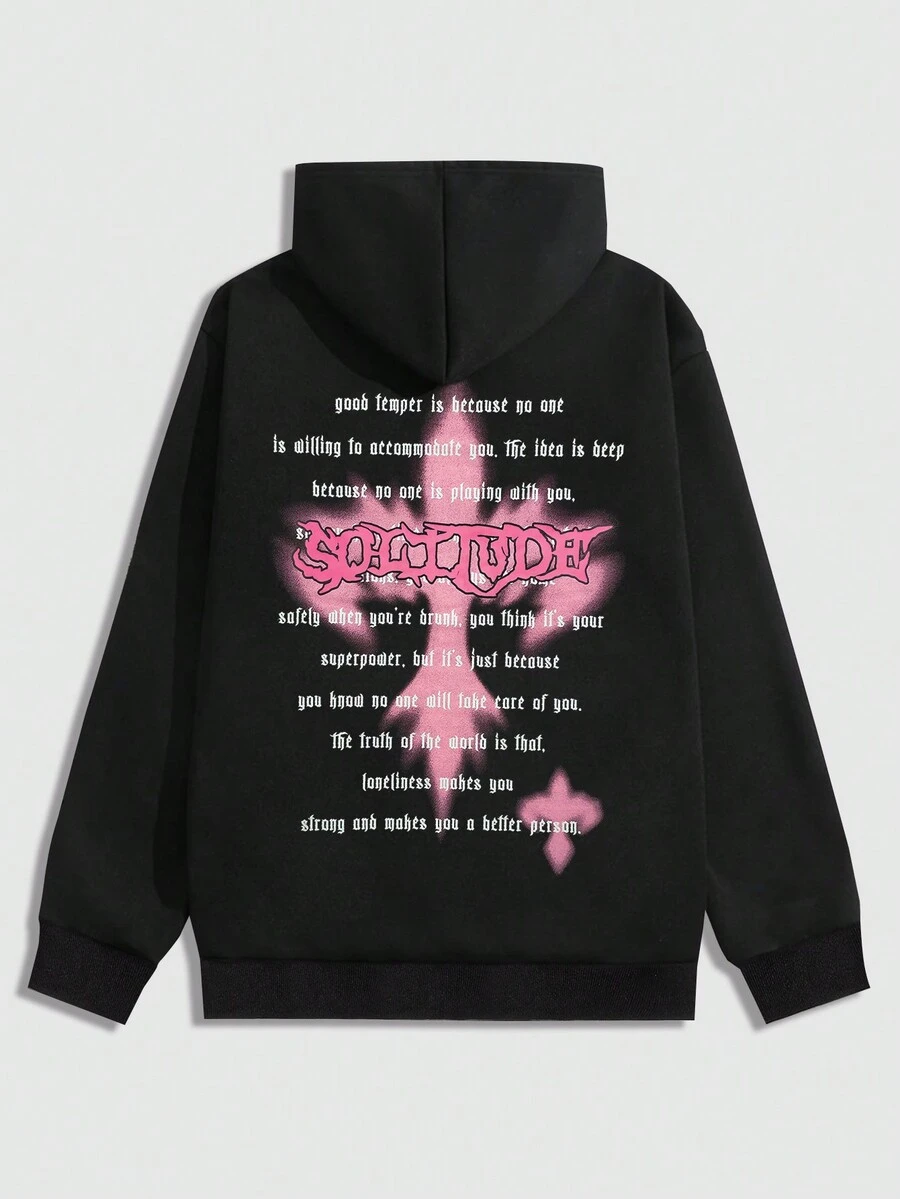 Street Life Hombres Capucha con estampado de slogan con cordón con forro térmico