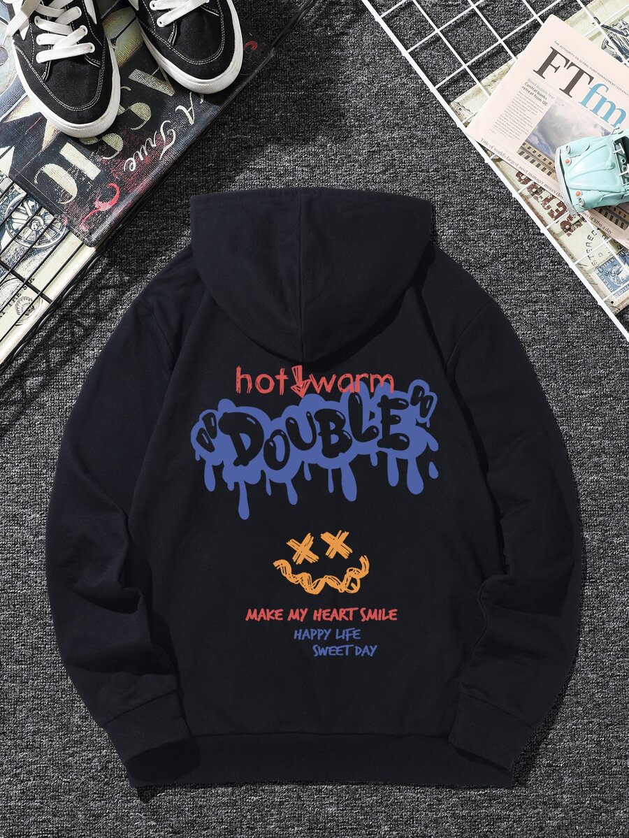 Hombres Capucha con estampado de slogan