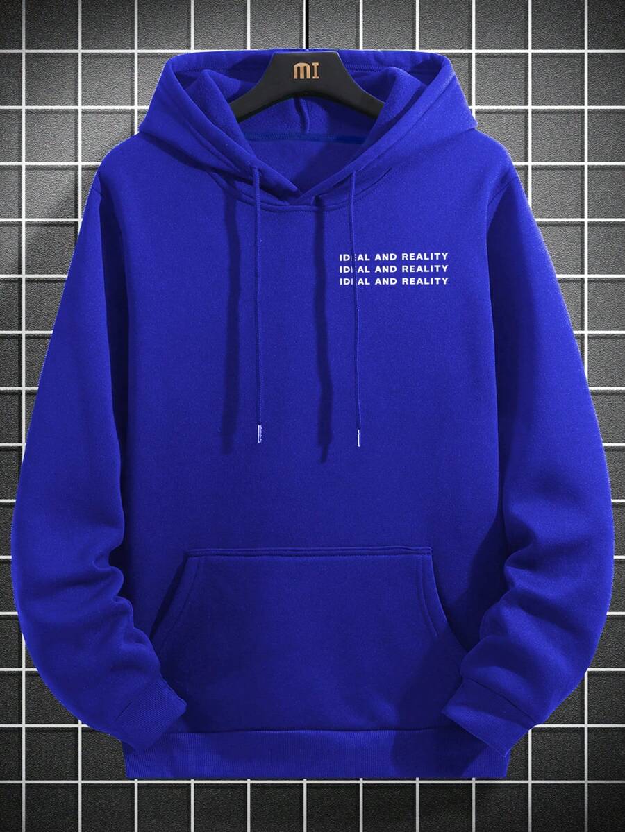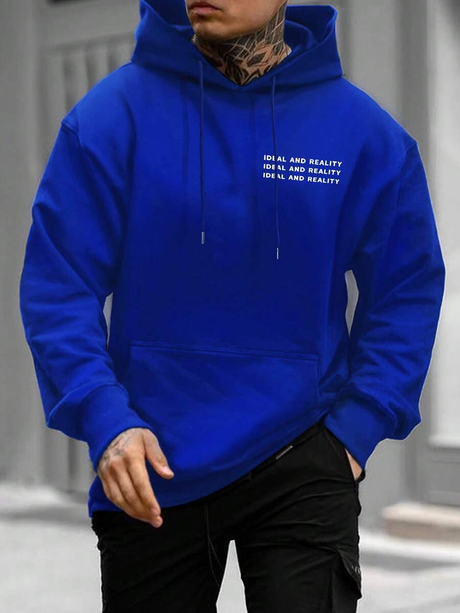 Sudadera Con Capucha Holgada Para Hombres Con Cordón Y Palabras Impresas