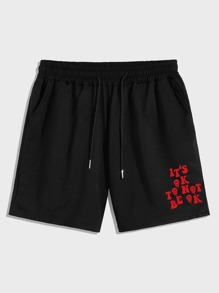 Hombres Shorts con estampado de slogan