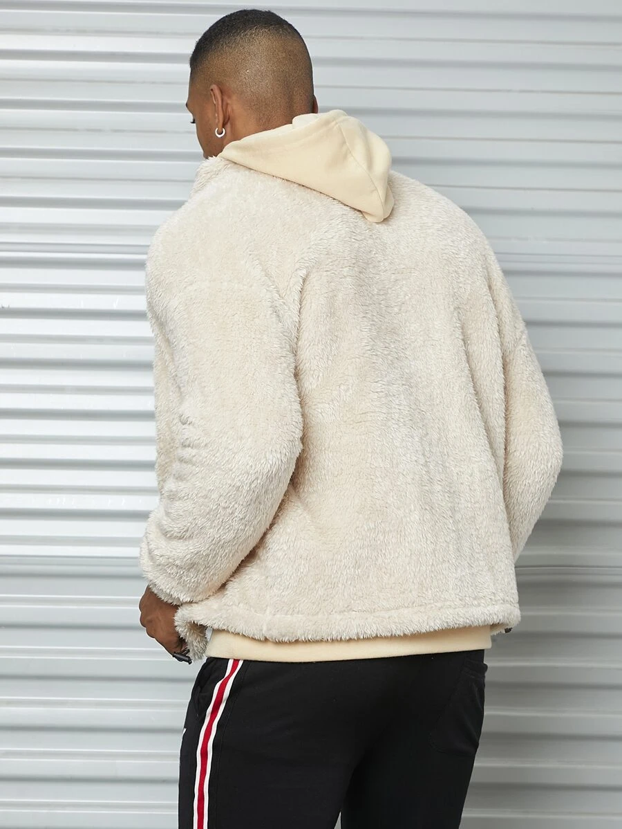 Hombres Cazadora teddy con slogan con diseño de parche de hombros caídos cremallera