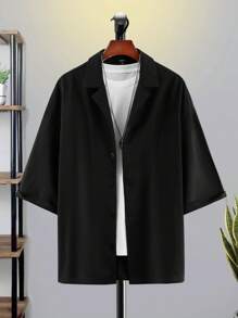 Camisa Para Hombre De Cuello Con Solapa De Color Sólido Y Ajuste Holgado (no Se Incluye Camiseta)
