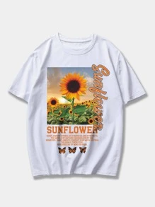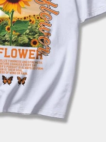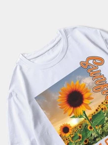 Hombres Camiseta con girasol & con estampado de slogan