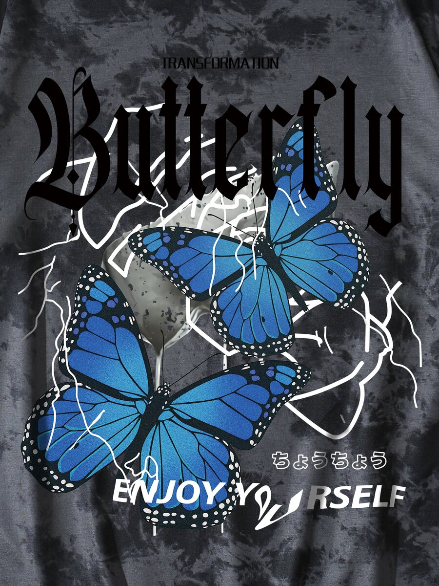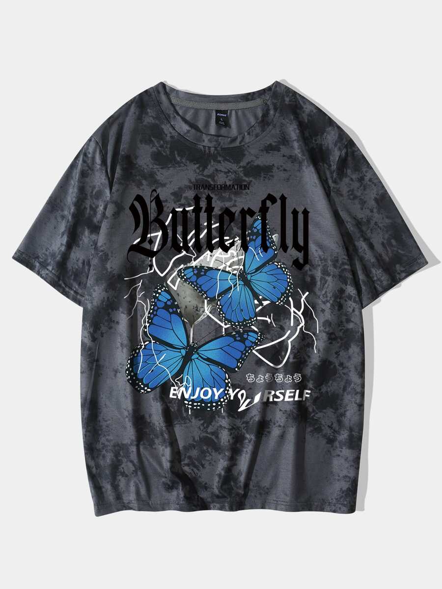 Street Life Hombres Camiseta de tie dye con estampado de mariposa y slogan