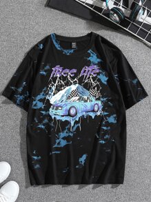 Hombres Camiseta de tie dye con estampado de coche