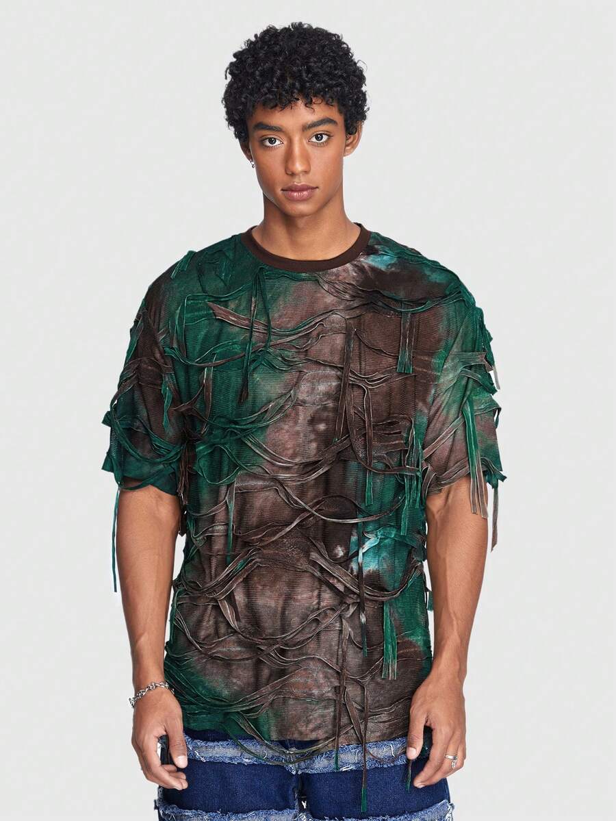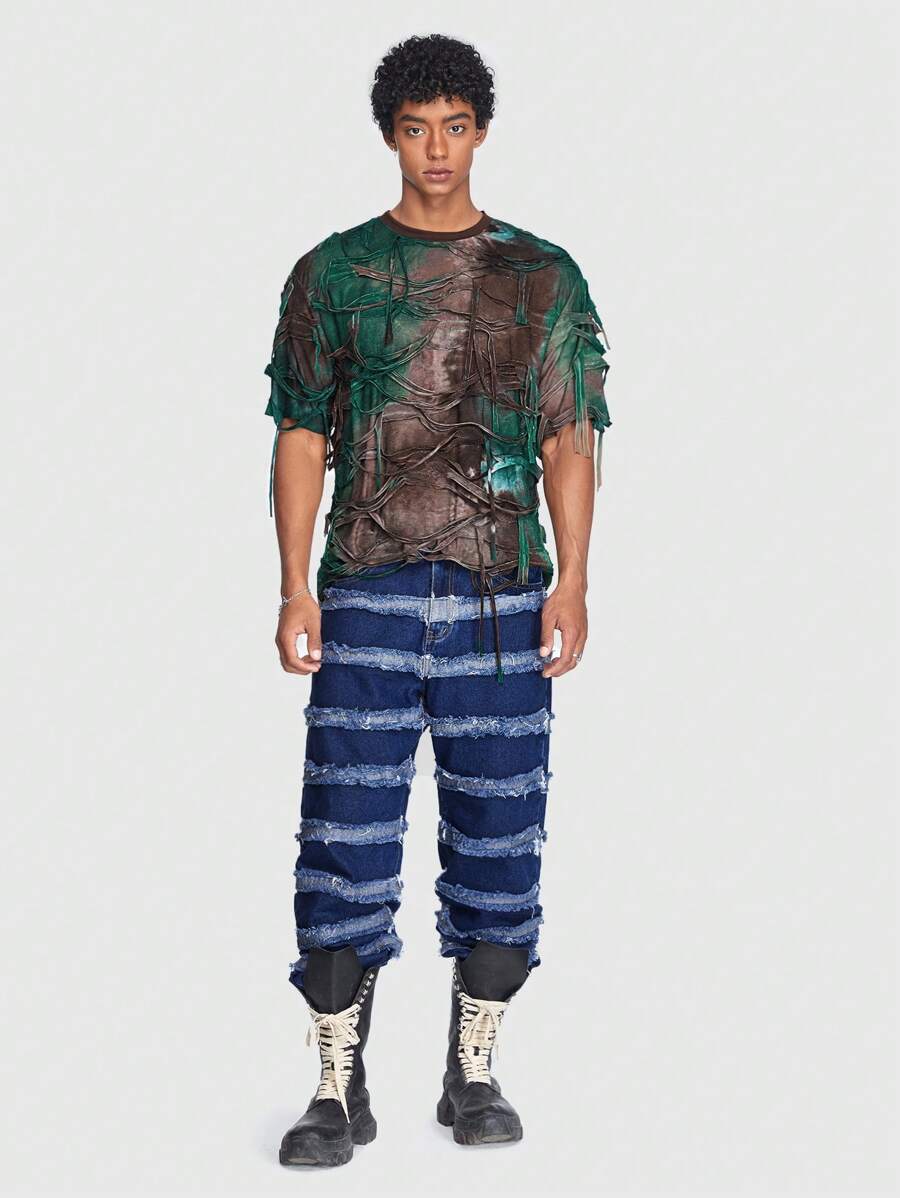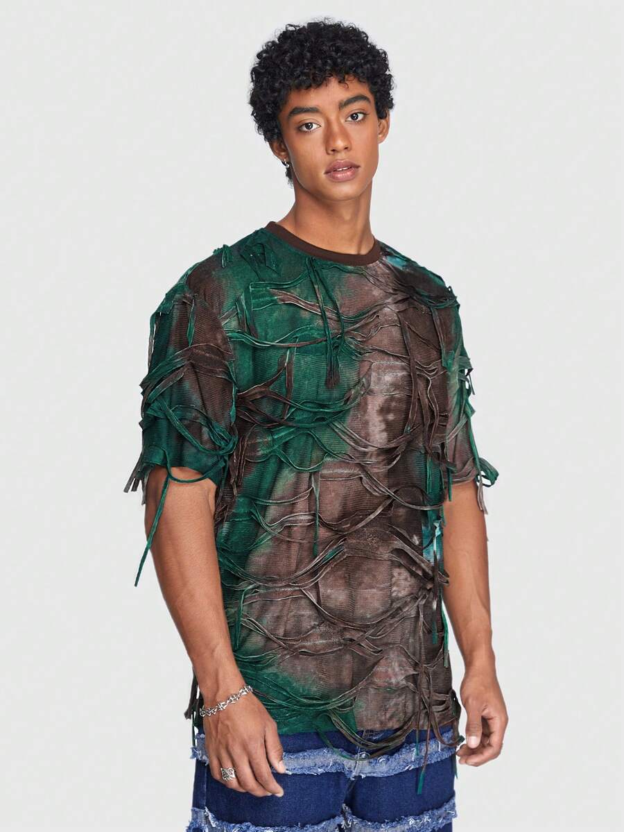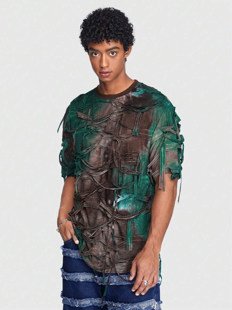 ROMWE Avant Hombres Camiseta desgarro de tie dye