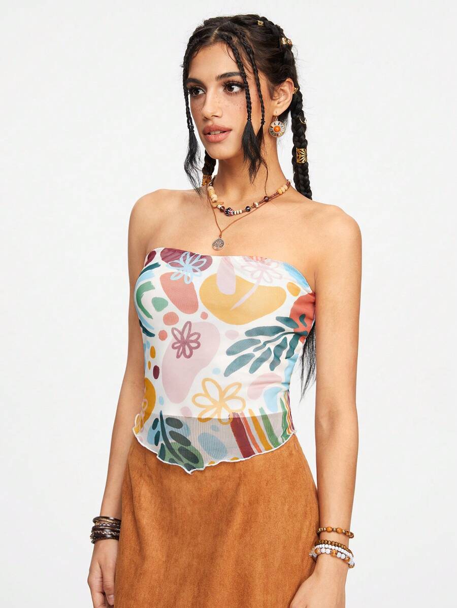 H3IDI Top tubo ajustado con diseño floral artístico para mujer
