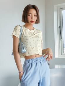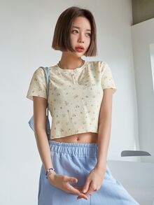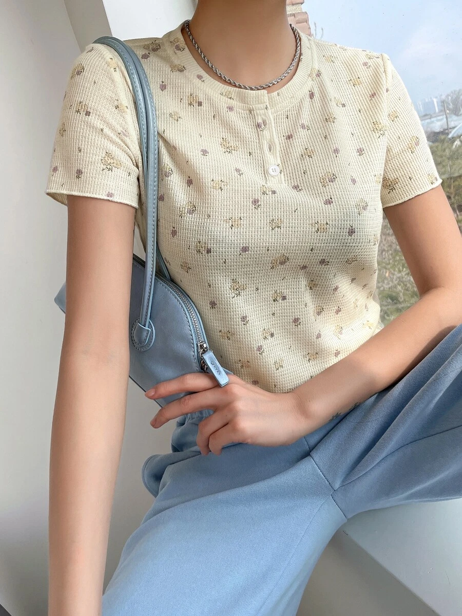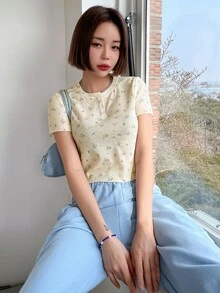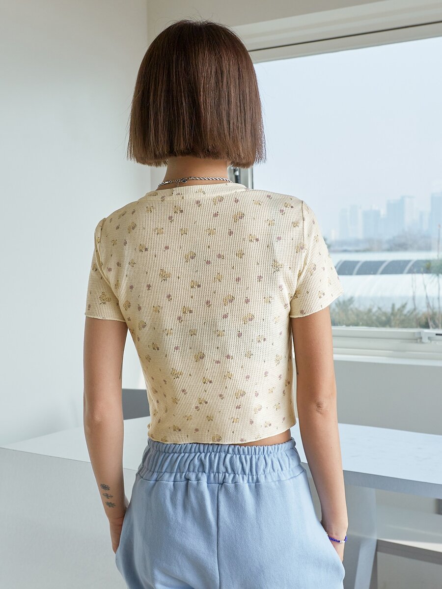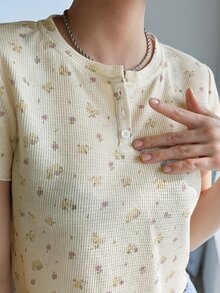 Camiseta con botón floral