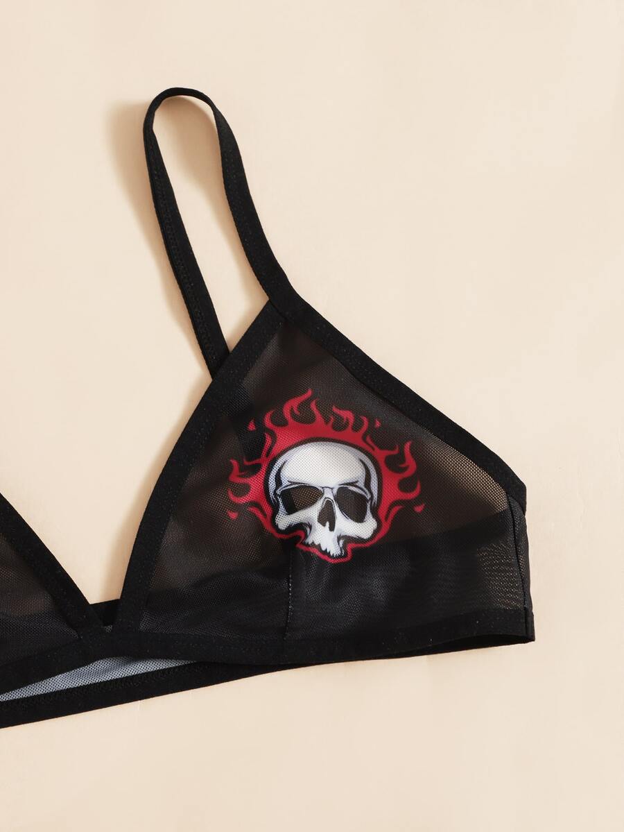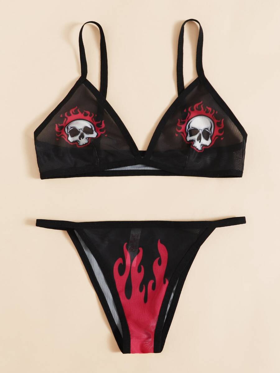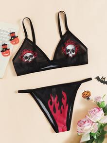 Set de lencería Halloween estampado de cráneo