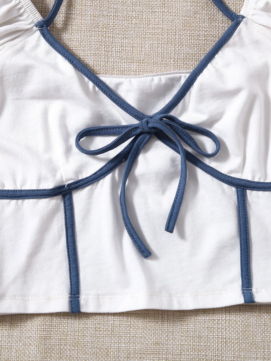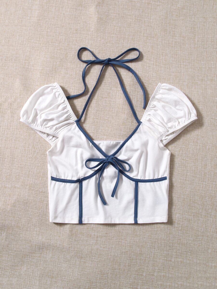 Camiseta Corta Con Ribete Ribeteado Y Lazo En La Parte Delantera Con Cuello Halter