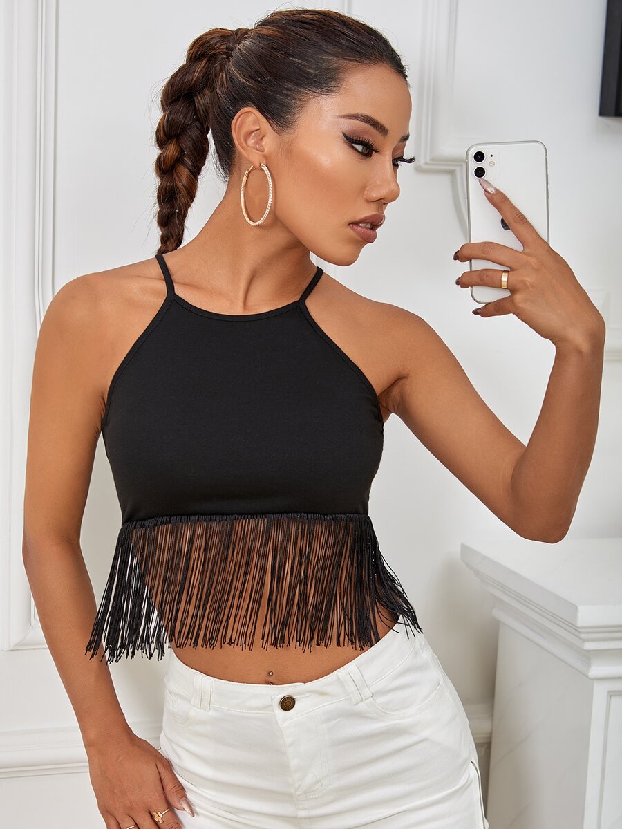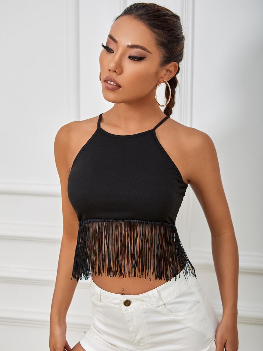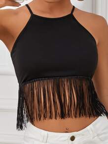 Top corto bajo con fleco de cuello halter