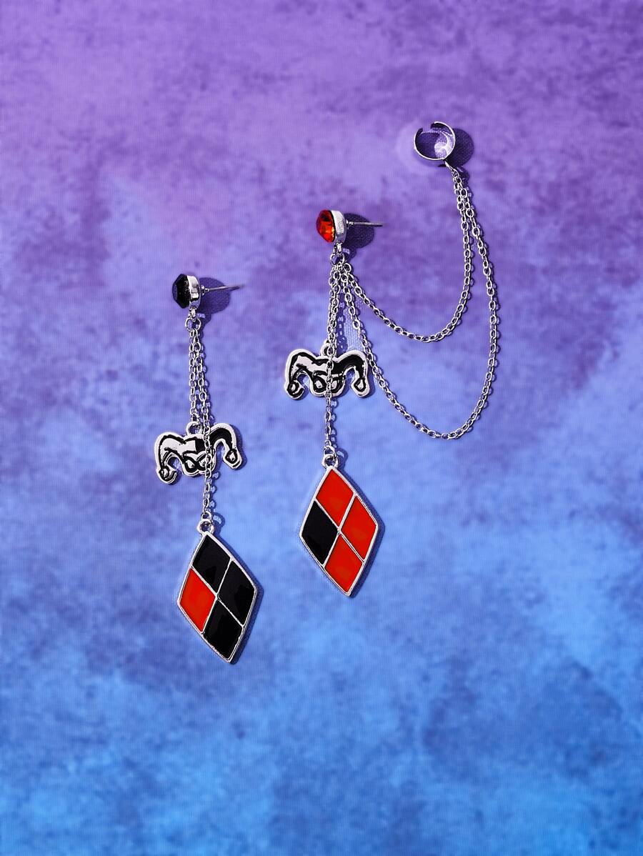 Harley Quinn | ROMWE Pendientes largos payaso & geométrico de desemparejar