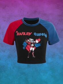 Harley Quinn | ROMWE Camiseta de color combinado con estampado de dibujos animados