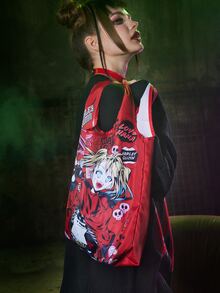 Harley Quinn | ROMWE Bolsa de compras con estampado de letra y figura