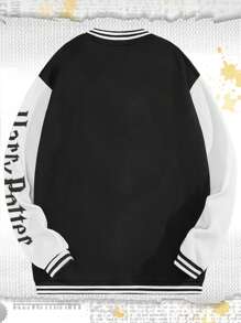 Harry Potter | ROMWE Chaqueta De Béisbol Para Hombre De Bloques De Colores Con Letras Impresas