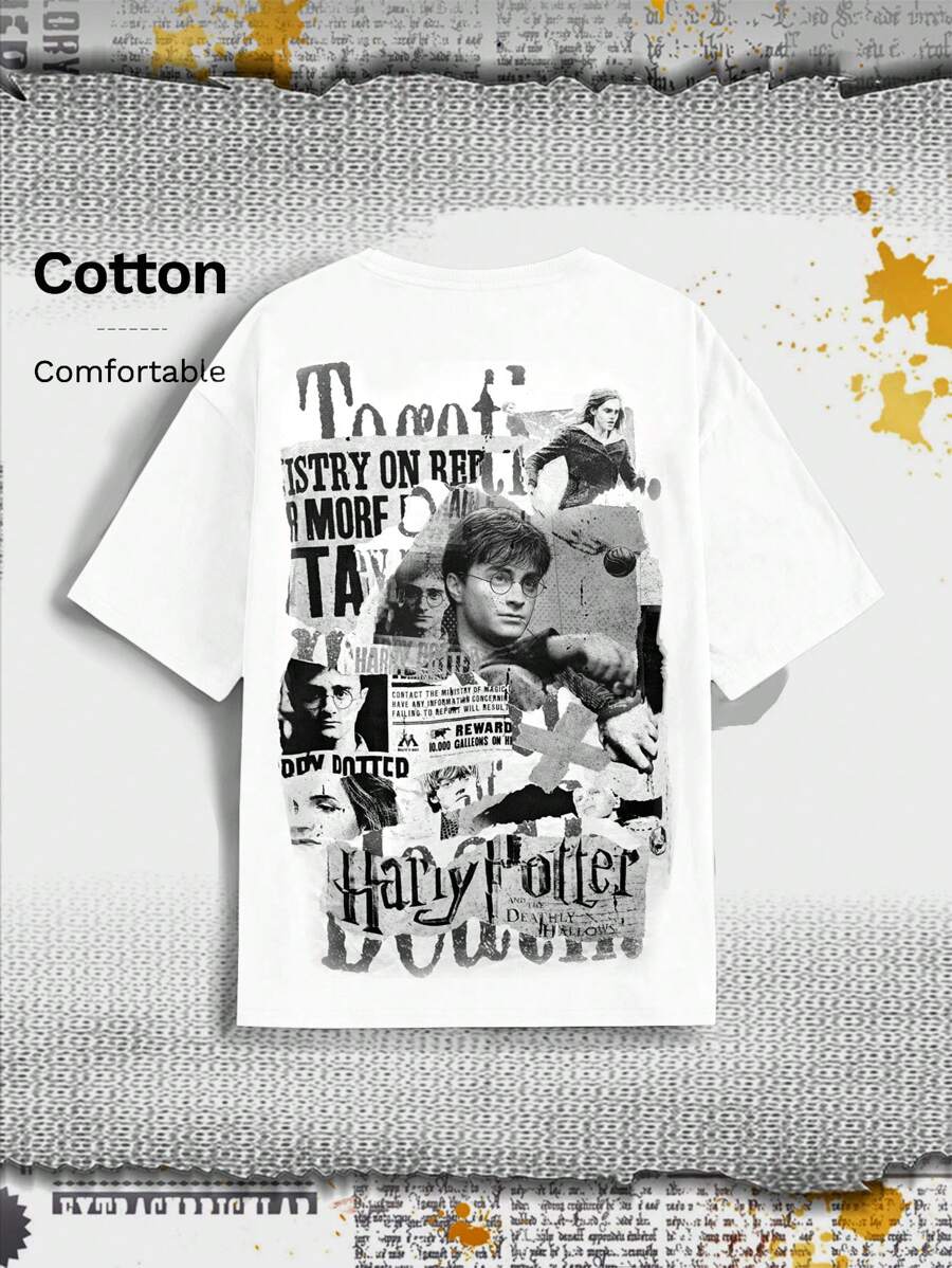 Harry Potter | ROMWE Camiseta oversize de estampado de periódico de estilo informal de verano, unisex