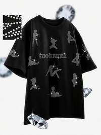 Street Life Camiseta de manga corta con estampado de rhinestones gótico para hombres, adecuada para uso diario, rave, Halloween, estilo de los 2000