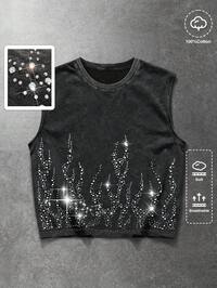 Street Life Camiseta de tirantes con estampado de rhinestones de moda urbana para hombres