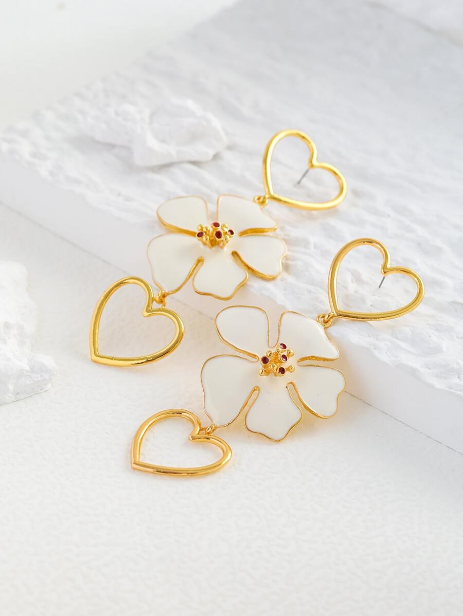 Pendientes largos con corazón & con diseño de flor
