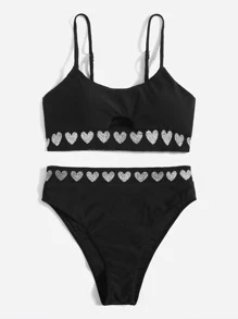 Bikini con recortes gráficos en forma de corazón