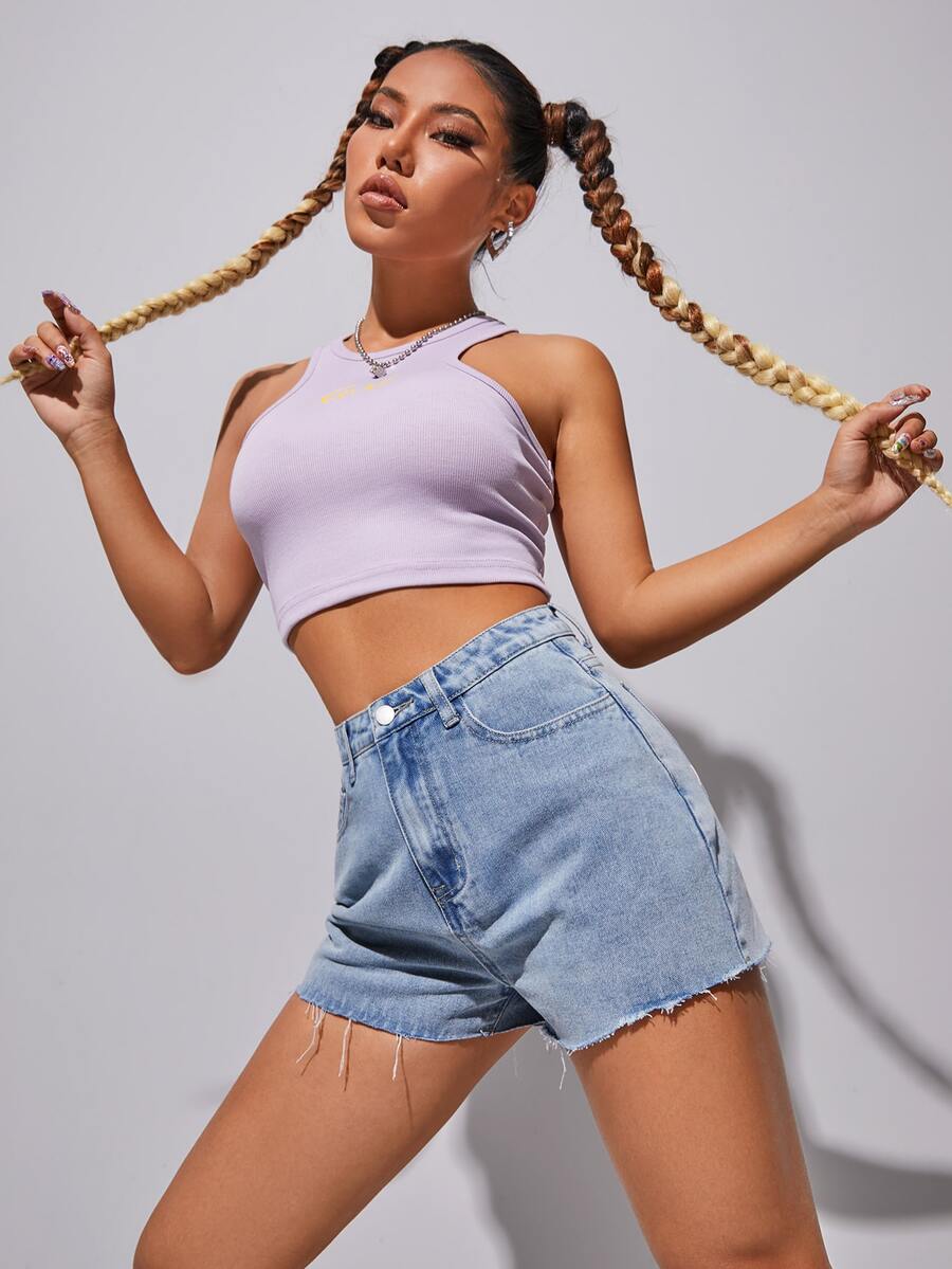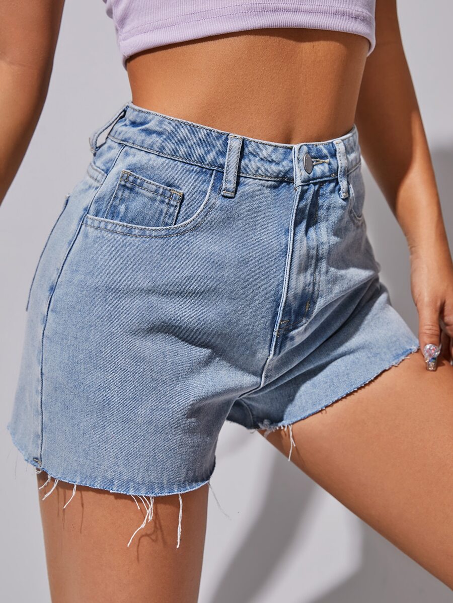 Shorts en mezclilla con estampado de corazón bajo crudo