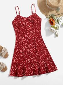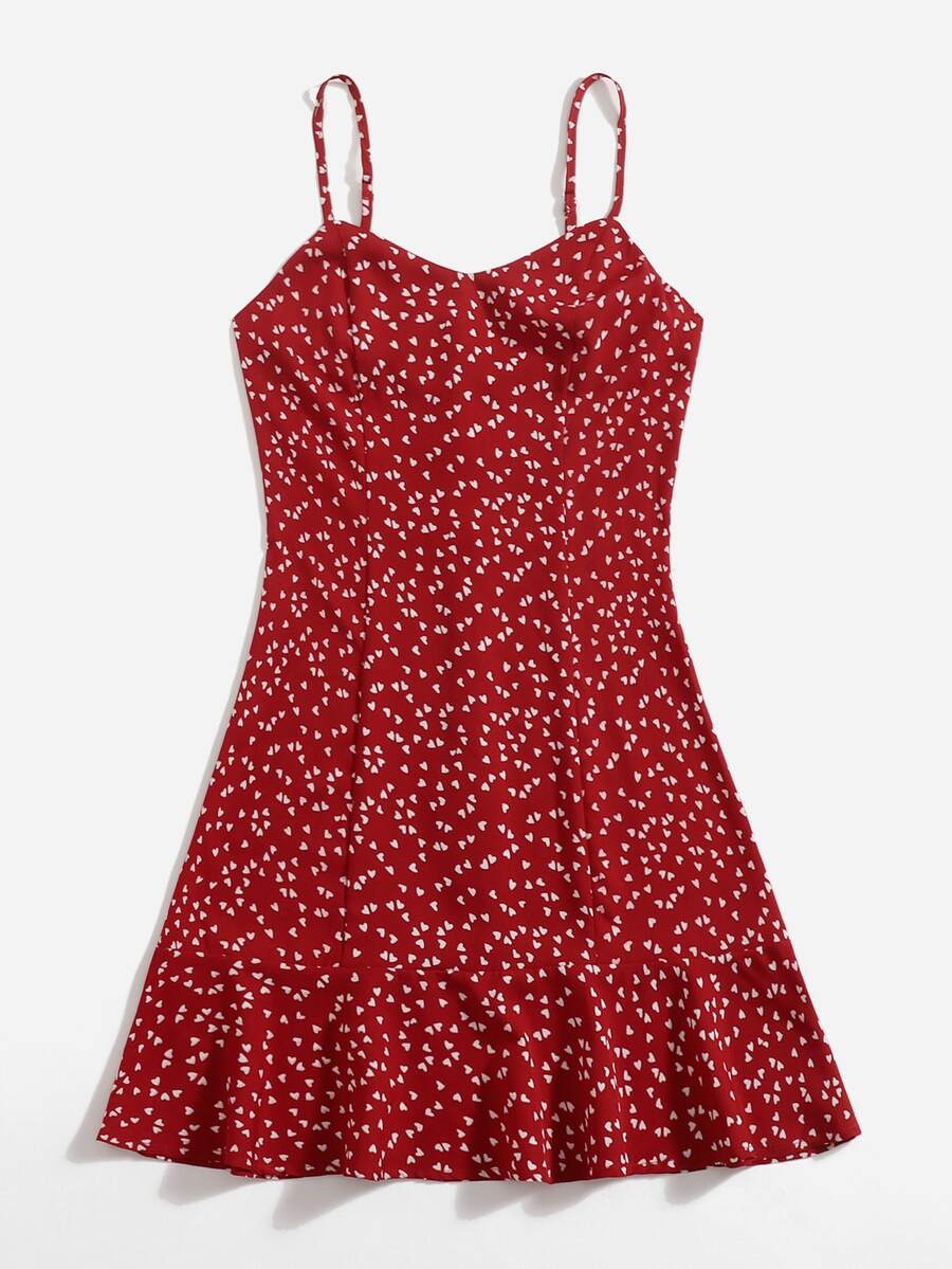 Vestido de tirantes bajo con fruncido con estamapdo de corazón