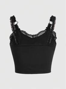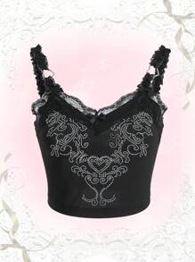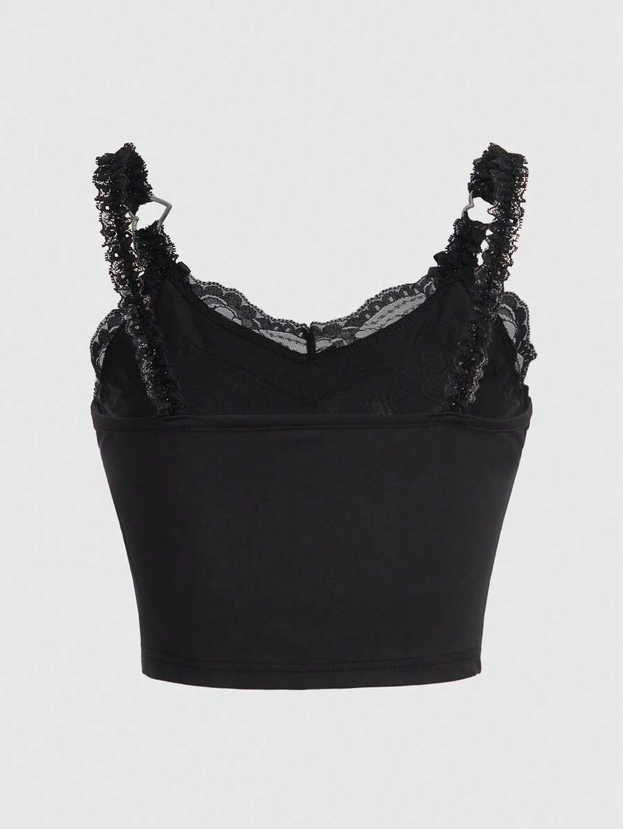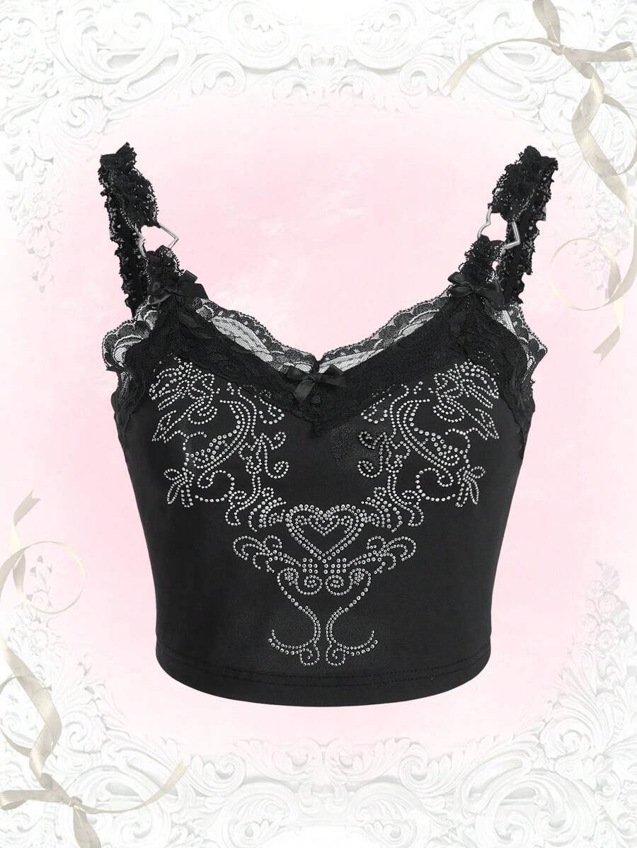Sweetness Top de tirantes con corazón con diamante de imitación con encaje en contraste