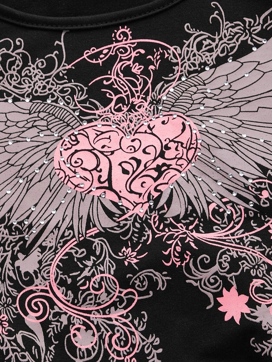 Camiseta corta con corazón & ala con estampado con diamante de imitación