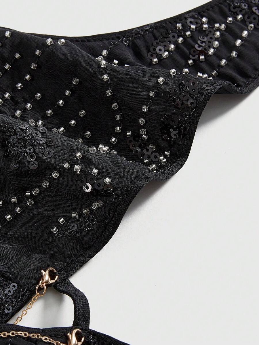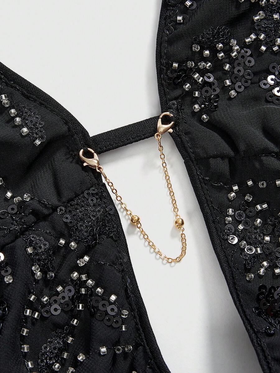 Chaleco sexy con cuello drapeado y espalda descubierta, bordado y con cuentas, para mujer