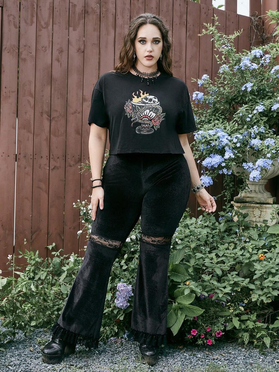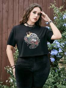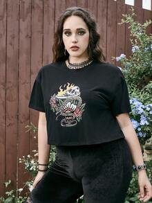 Hellfunco Camiseta de hombros caídos floral & con estampado de cráneo
