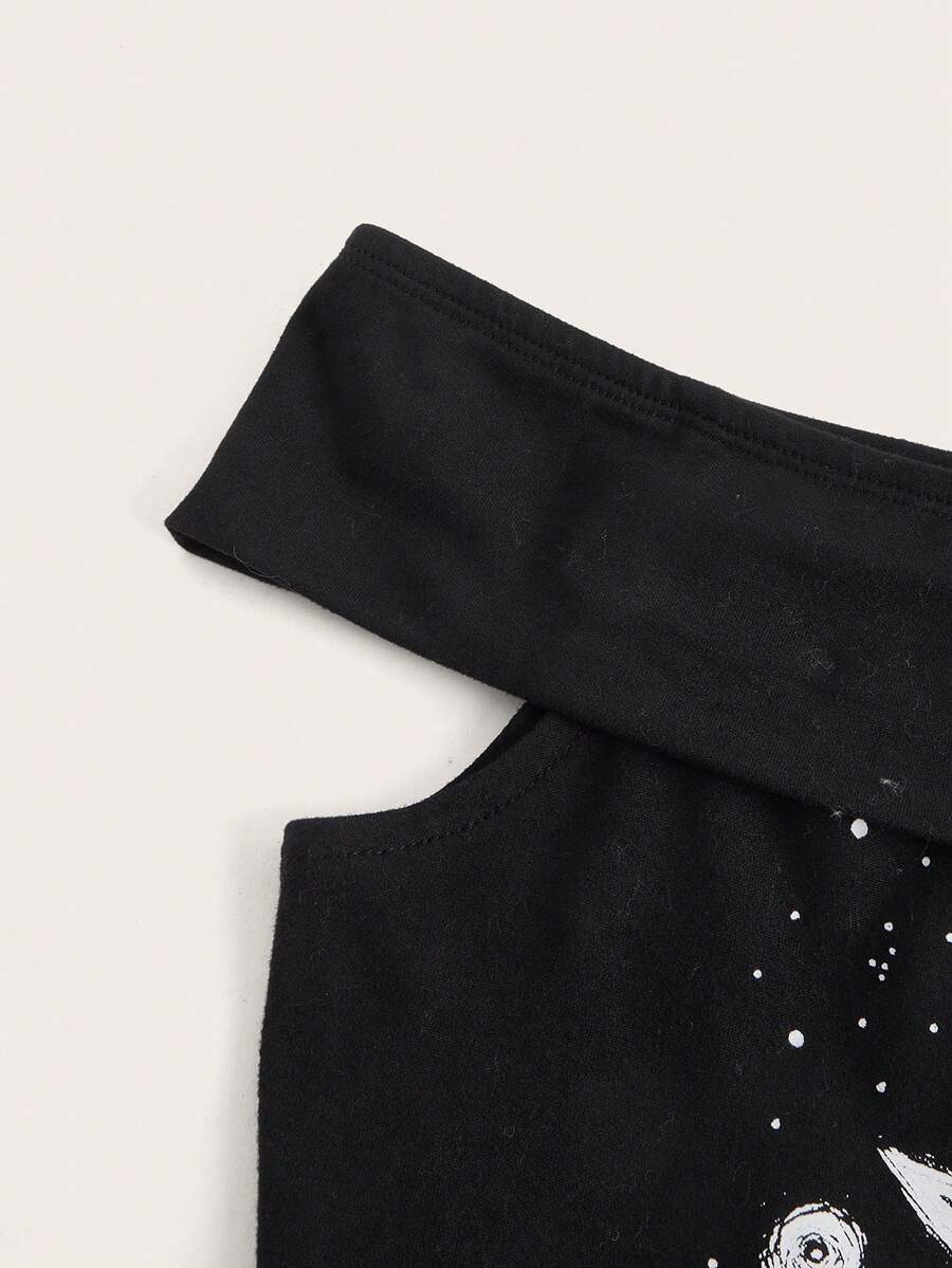 Herminedecrayon Top crop con estampado de sol y luna de hombros descubiertos