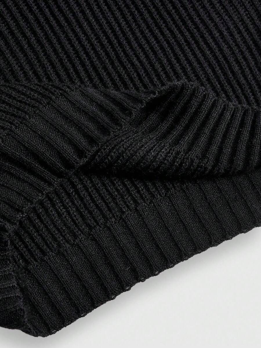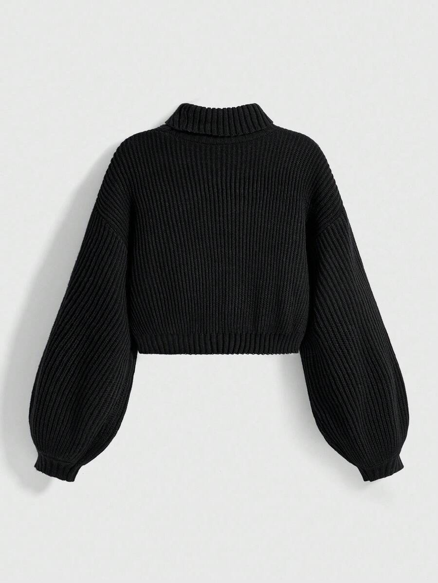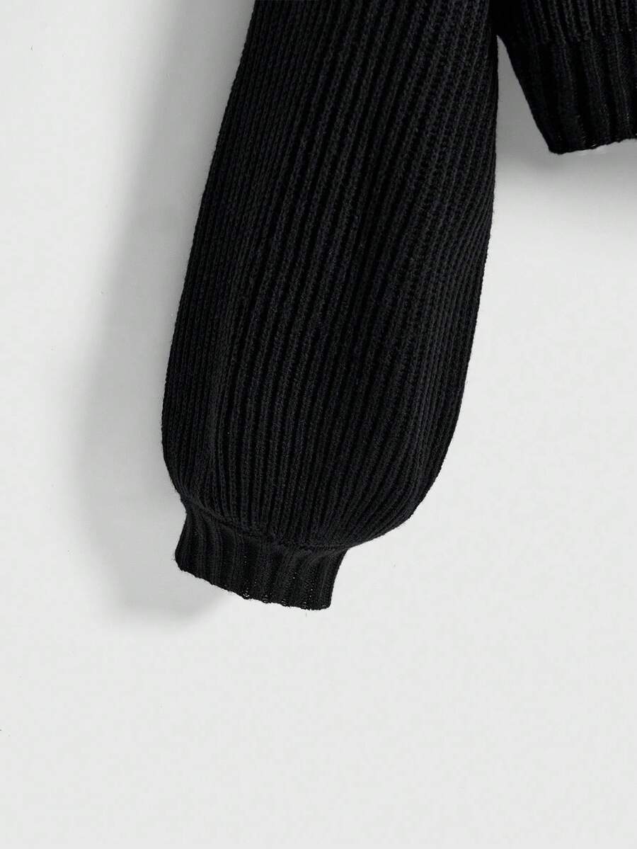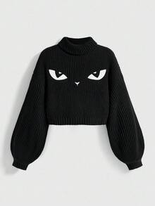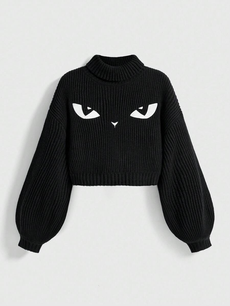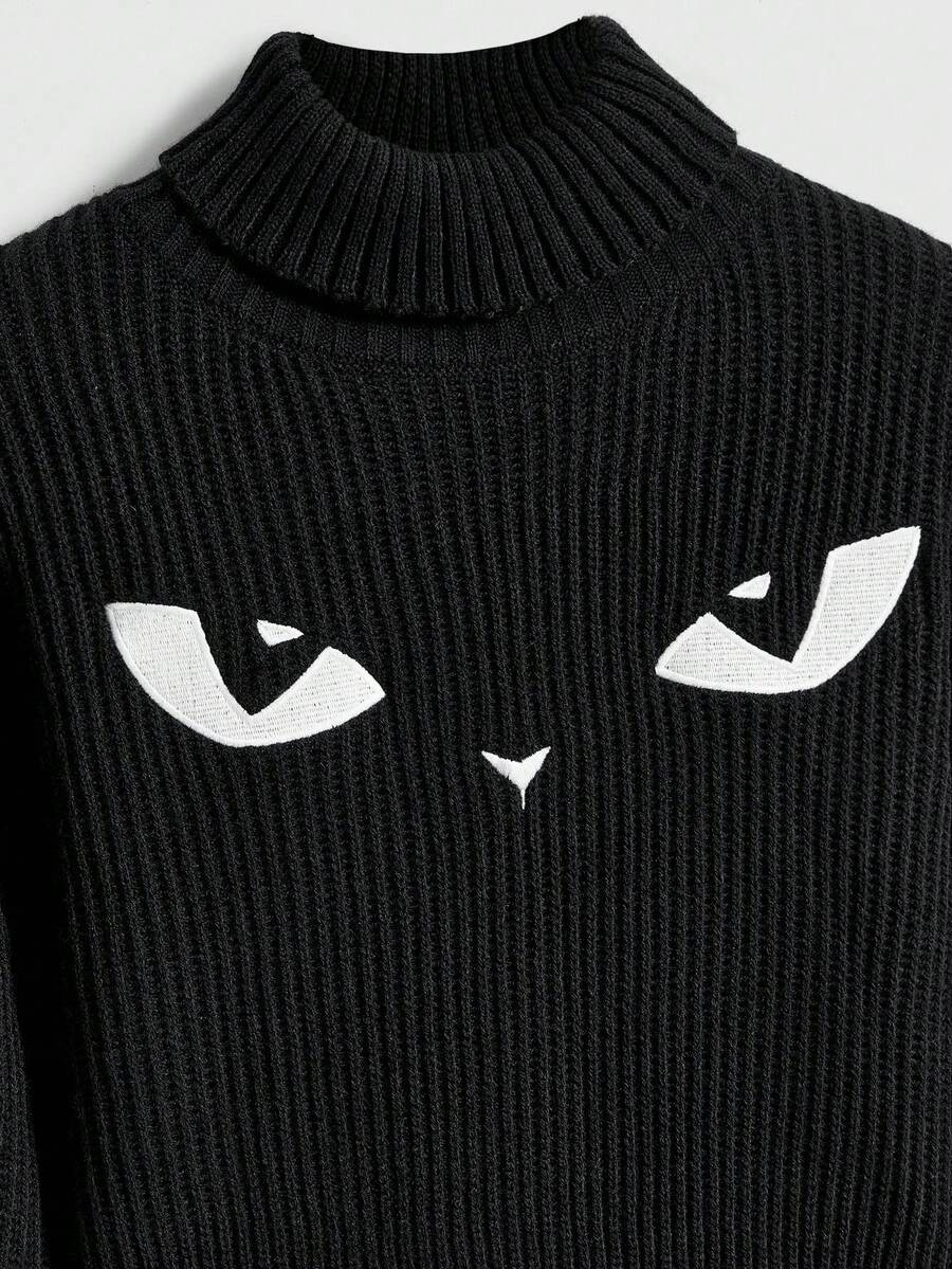 Goth Suéter de cuello alto negro gótico oscuro con bordado misterioso de gato