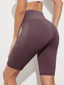 Shorts deportivos de cintura ancha de buena elasticidad con bolsillo de celular