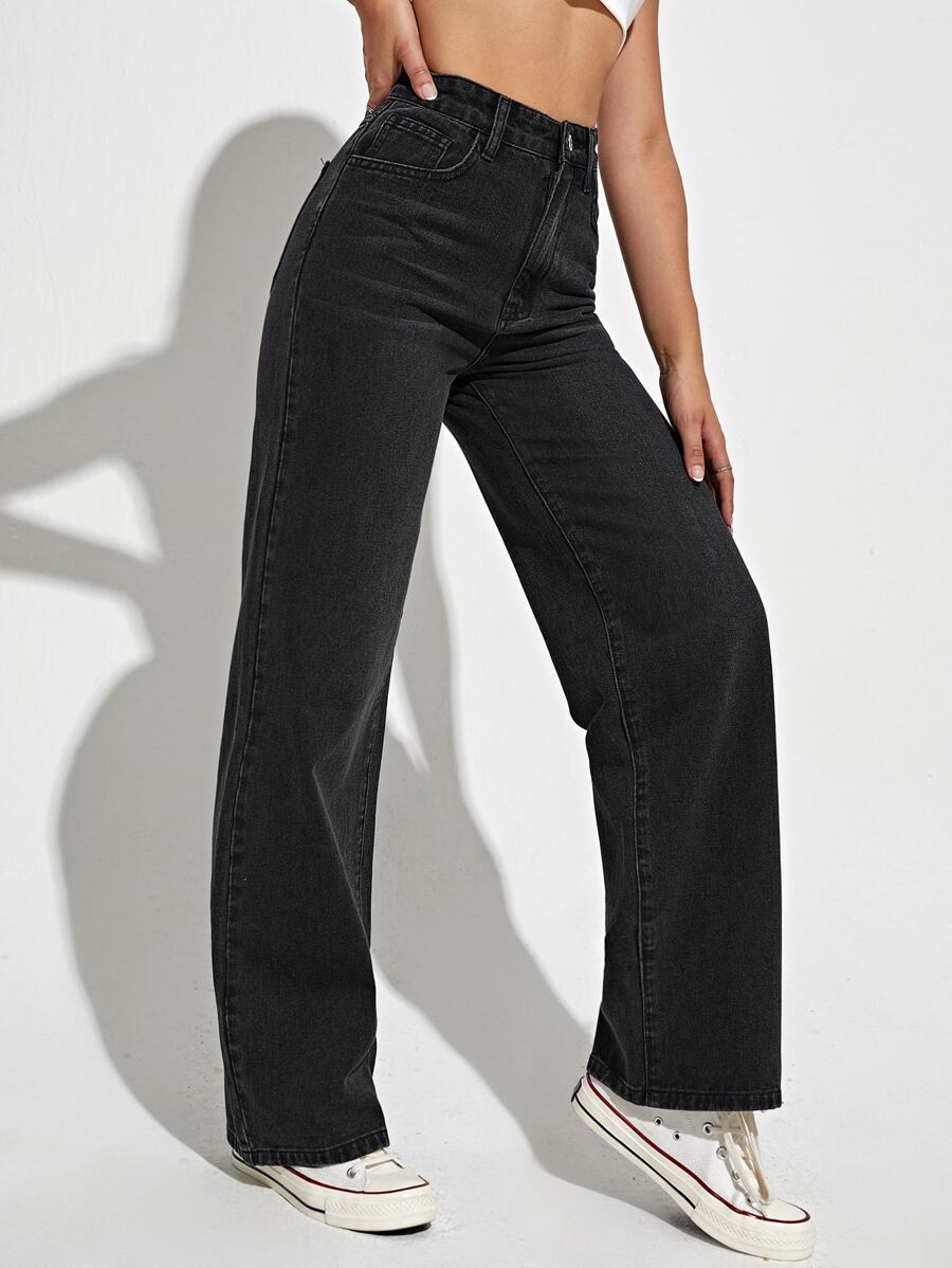 Jeans de pierna recta de talle alto con bolsillo oblicuo
