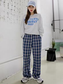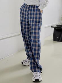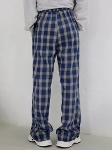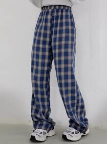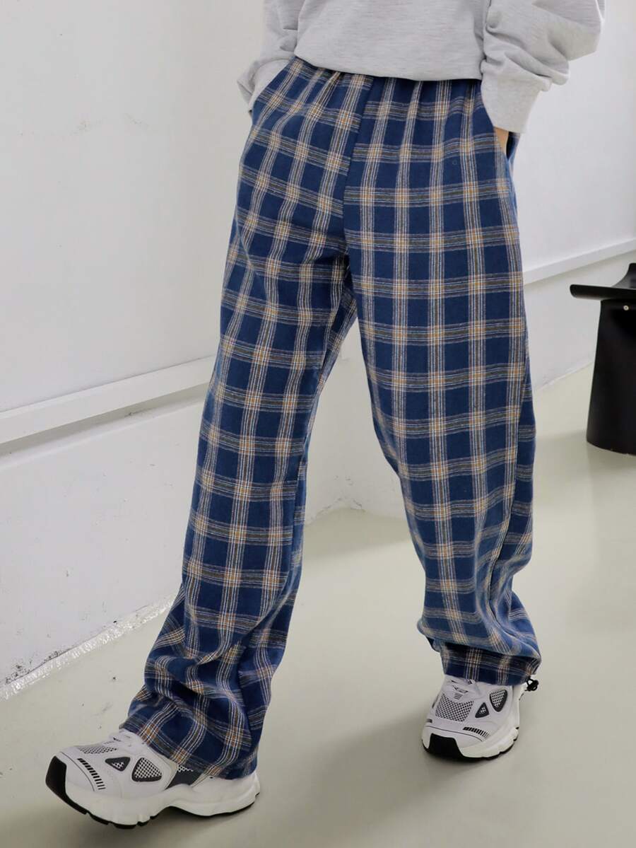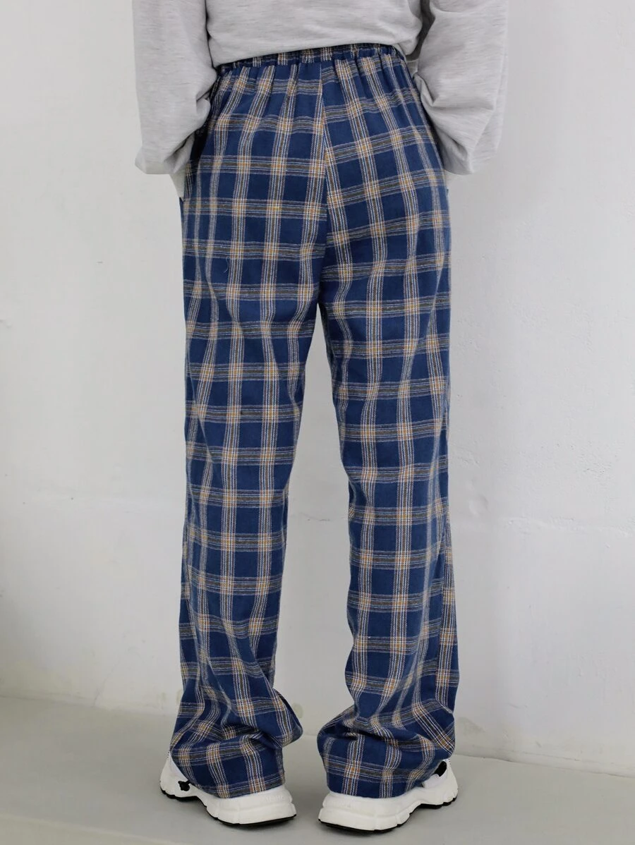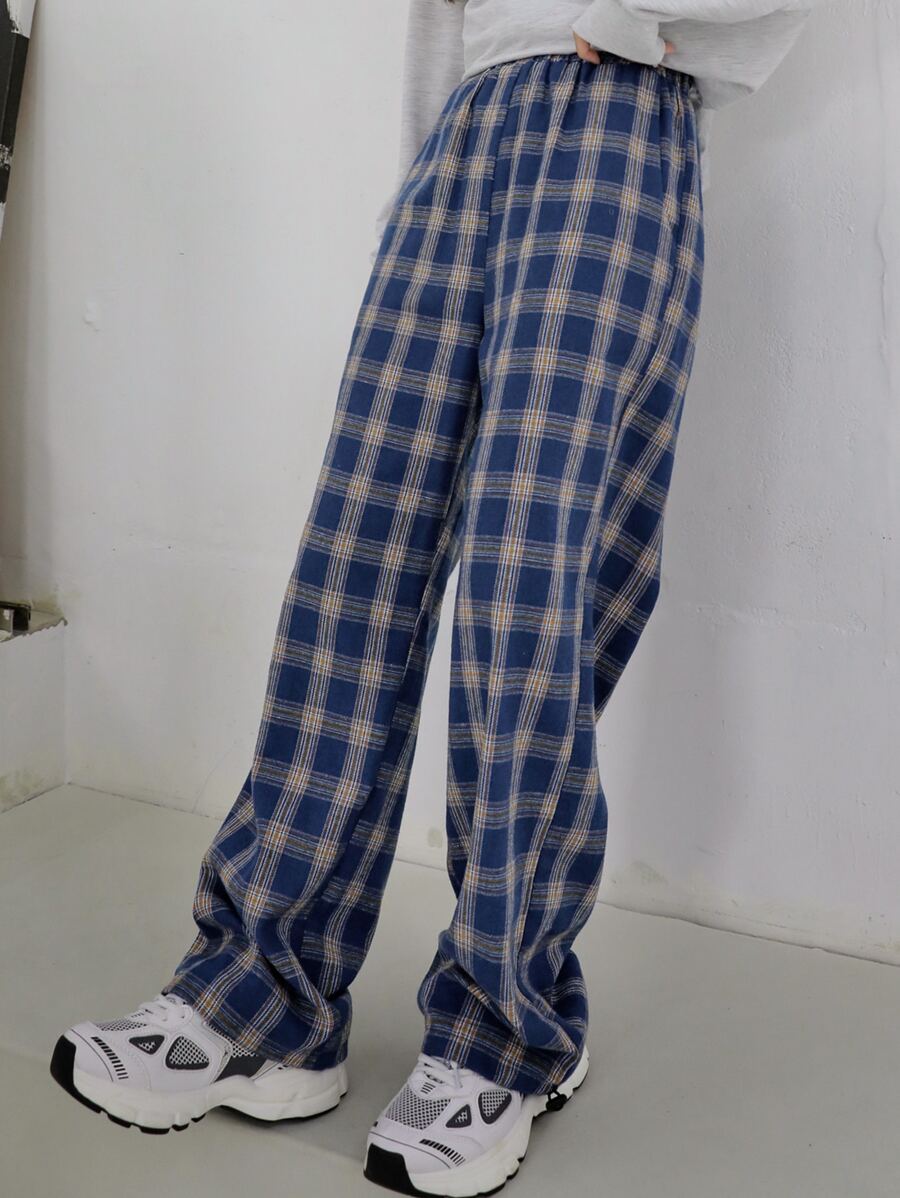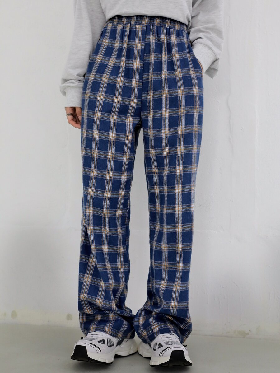 Pantalones de talle alto de tartán con bolsillo oblicuo