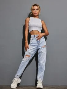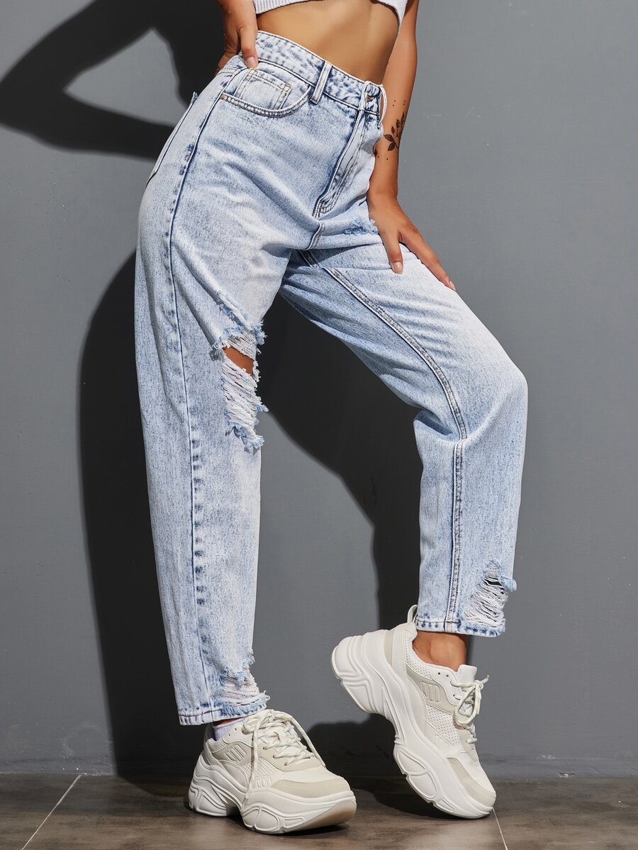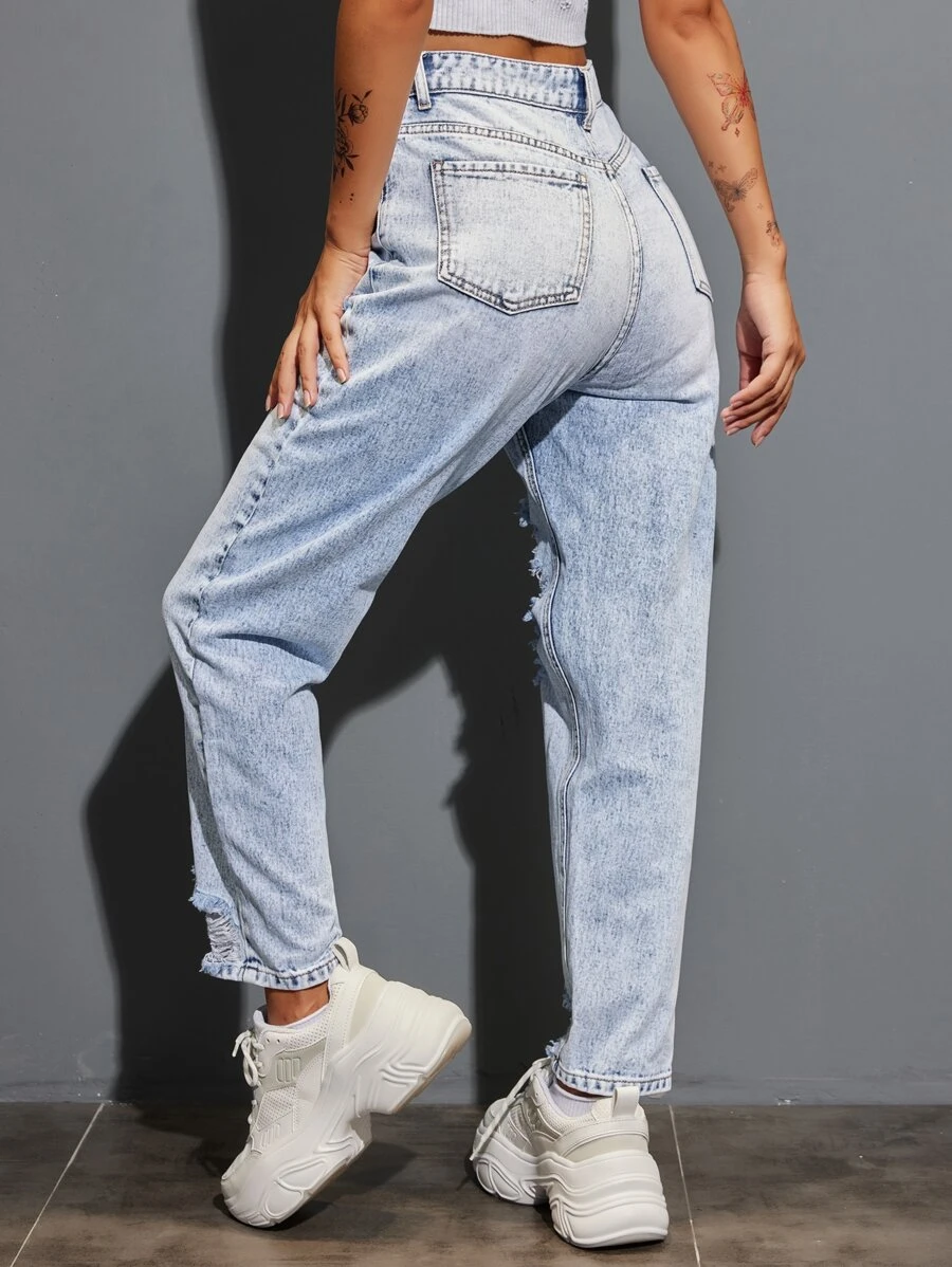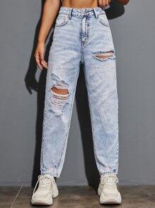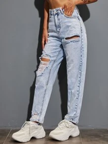 Jeans mom rotos de talle alto