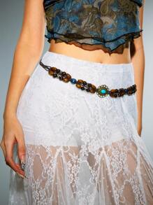 Hippie 1 pieza Cinturón tejido de cuentas de madera vintage hecho a mano, cinturón decorativo para la cintura y los pantalones para mujeres