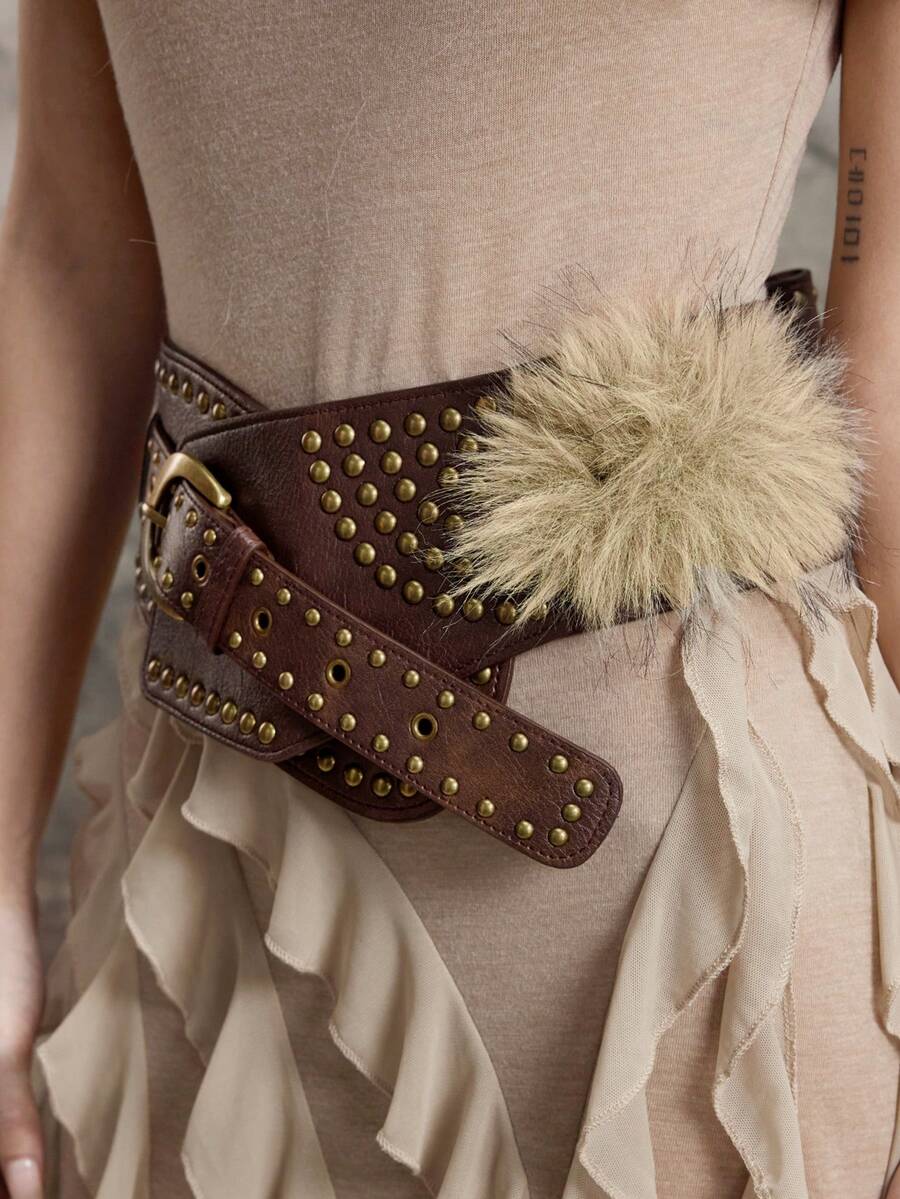 Hippie 1 pieza Cinturón de cintura con hebilla de disco de estilo vintage Y2K, falso, remaches y aleación