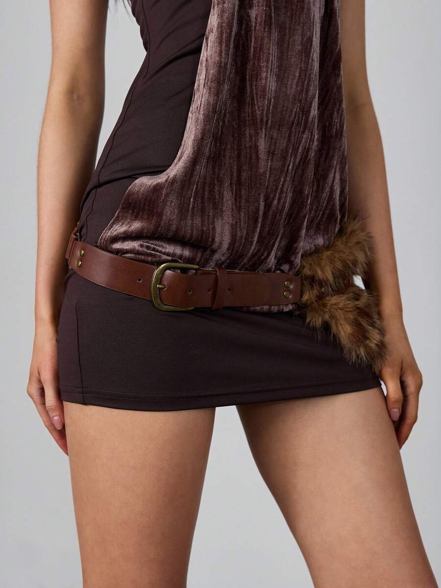 Hippie 1 pieza Cinturón de mujer de cintura con empalmado de piel de leopardo marrón y peludo, decoración para vestidos, jeans, informal y versátil