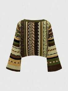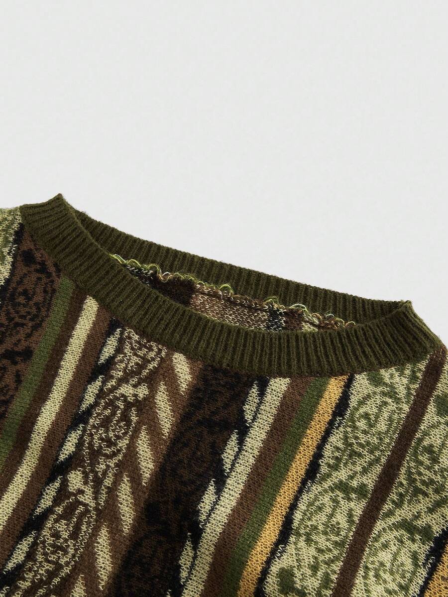 Suéter de cuello redondo a rayas con estilo hippie bohemio